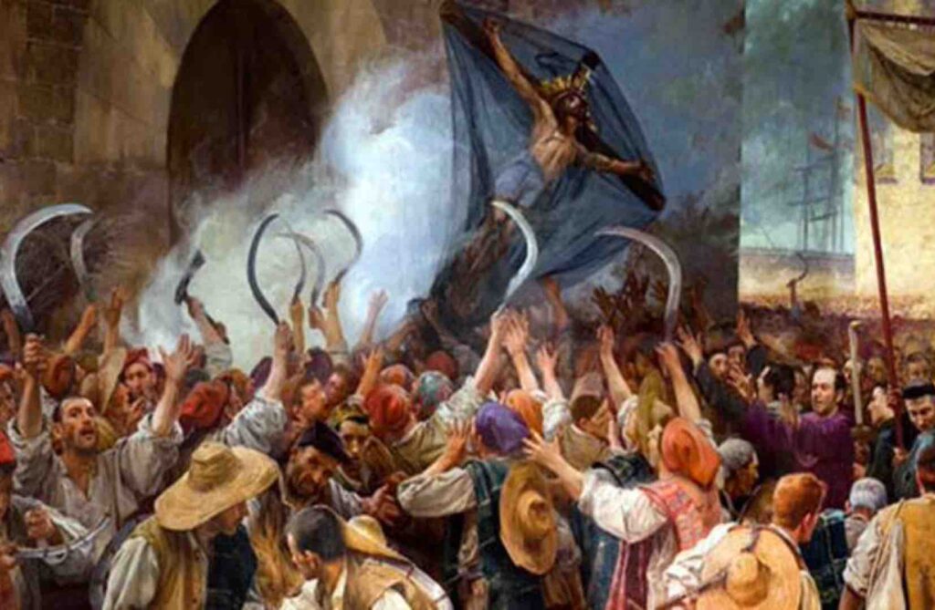 El 7 de junio de 1640 unos segadores se levantan en armas en contra del ejército español y eso va a precipitar una guerra que se va a dar en la región de Cataluña para independizarse de España.