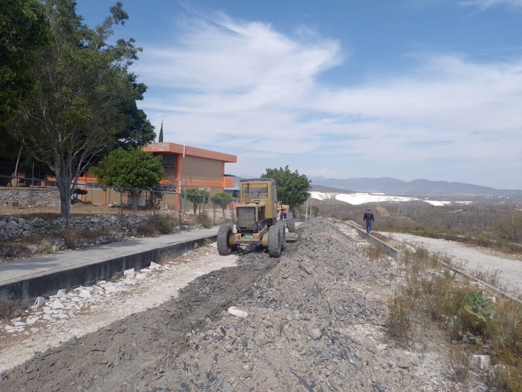 El 20 de diciembre se iniciaron los trabajos de acarreo de material con camiones de volteos para elevar 15 centímetros el nivel de la terracería, y el 7 de enero pasado llegó la máquina moto-conformadora al lugar para iniciar con los trabajos. También se envió una máquina retro-excavadora para iniciar los trabajos de apoyo de despalme del terreno al interior del Centro Escolar para mejorar y aprovechar las diferentes áreas internas, lo cual en estos momentos se está realizando.
