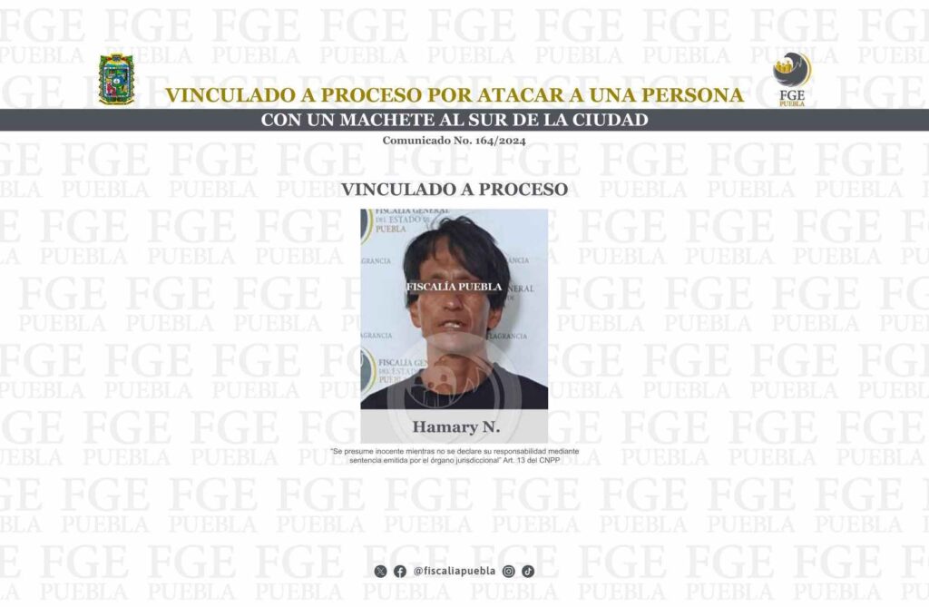 En seguimiento a la puesta a disposición de Hamary N., la Fiscalía General del Estado de Puebla consiguió su vinculación a proceso por su presunta responsabilidad del delito de ataques peligrosos.