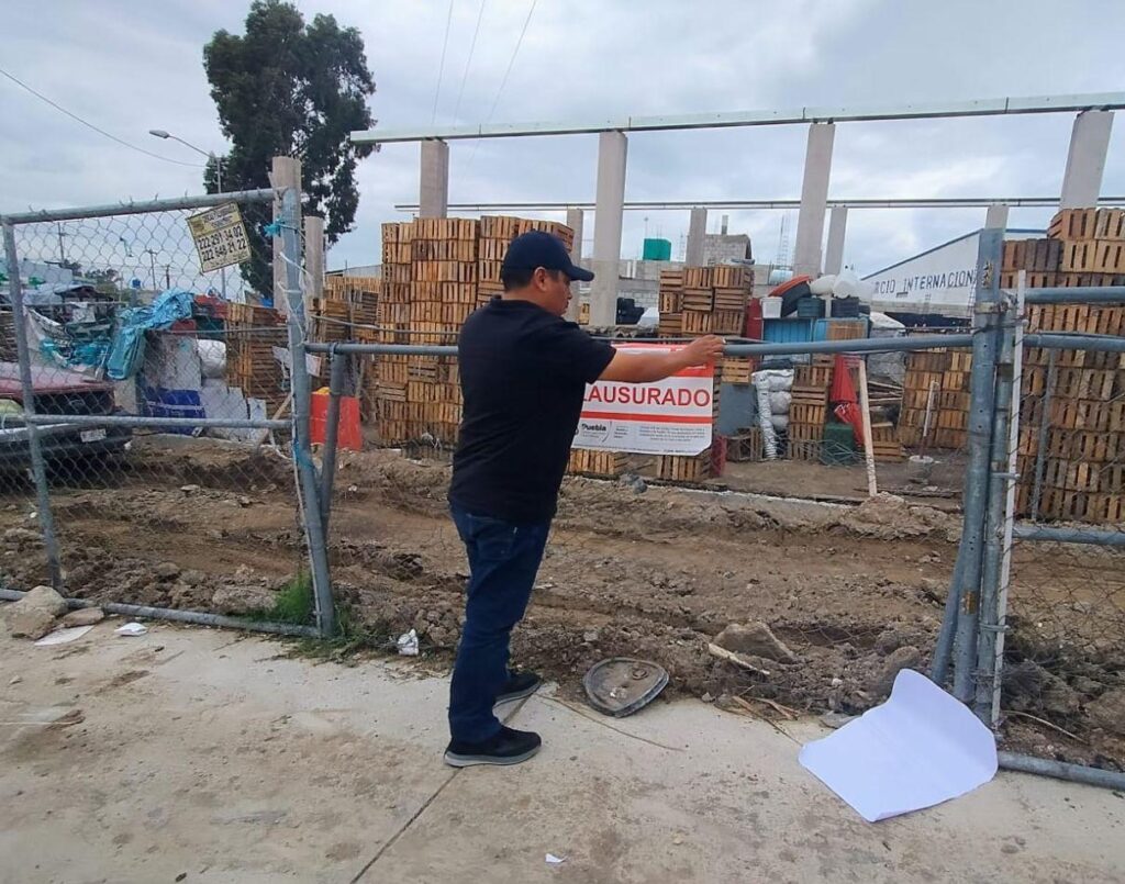 Cumpliendo la normativa aplicable en materia de Desarrollo Urbano, el Ayuntamiento de Puebla, realizó la supervisión y determinó la clausura de una obra que se encontraba en proceso constructivo y no contaba con los permisos correspondientes para su realización en la zona de la Central de Abasto.