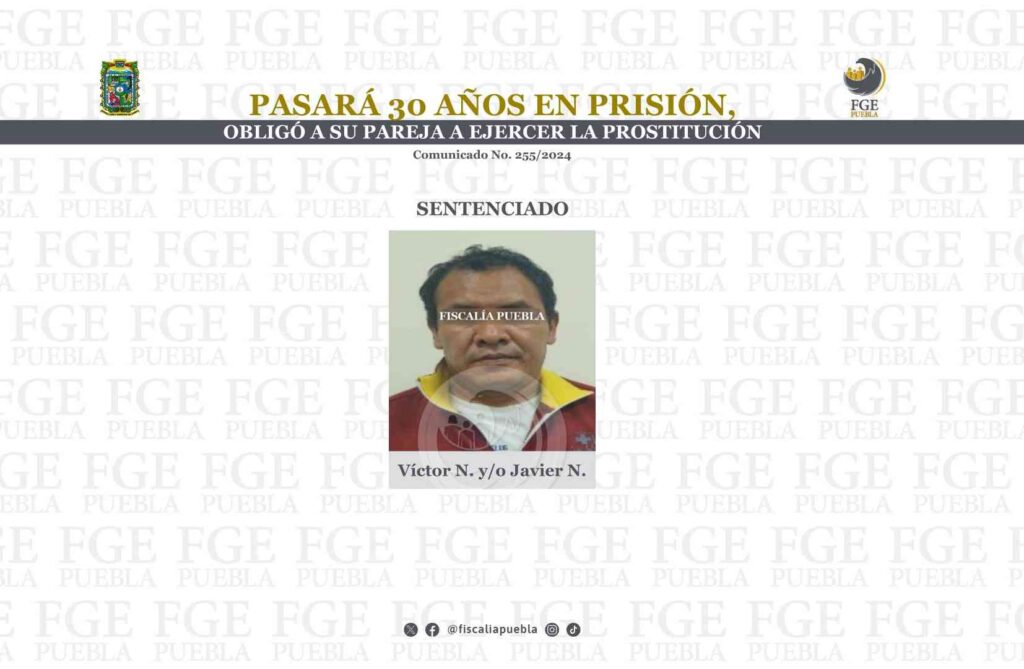 La Fiscalía General del Estado de Puebla acreditó con datos de prueba la responsabilidad de Víctor N. y/o Javier N. en el delito de trata de personas por enganchamiento y trata de personas en la modalidad de explotación sexual por prostitución ajena. Fue sentenciado a 30 años de prisión.
