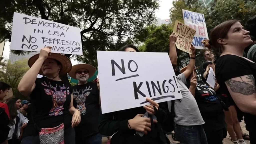 Ciudad de México (EFE).- Cientos de personas marcharon este sábado en la capital de México para manifestar su rechazo a la política migratoria del presidente estadounidense Donald Trump, en sintonía con las protestas ‘No Kings’ (No reyes) que se celebran en EE.UU. contra las agresivas redadas del líder republicano para detener personas migrantes.