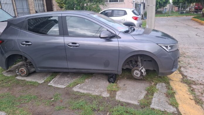 San Andrés Cholula, Puebla. La inseguridad en el municipio de San Andrés Cholula sigue en aumento, particularmente en el conjunto habitacional Geovillas Santa Clara II, donde los robos a vehículos se han vuelto constantes. Este miércoles, un automóvil amaneció sin llantas, evidenciando una vez más la falta de vigilancia y presencia policiaca en la zona.