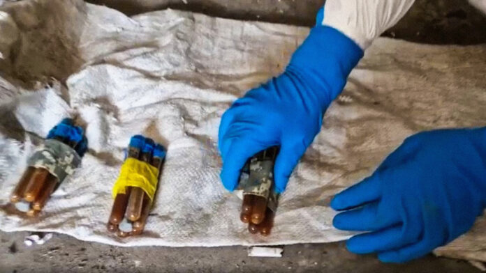 El Servicio Federal de Seguridad de Rusia (FSB) descubrió un alijo de las Fuerzas Armadas de Ucrania con bombas caseras para drones cargadas con un agente de guerra química prohibido. El organismo publicó un video de la incautación del armamento.