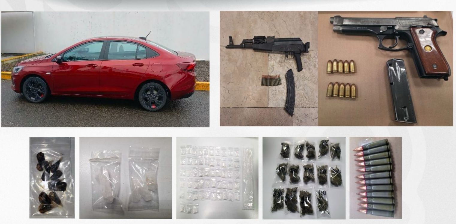 Durante la intervención se aseguraron dos armas de fuego, 43 cartuchos útiles, seis teléfonos móviles, envoltorios con posible droga, dinero en efectivo y un vehículo.