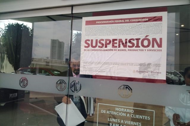 La Procuraduría Federal del Consumidor (Profeco) colocó tres sellos de suspensión a la agencia de autos Concesionaria MG Angelópolis “Supremacía Excelencia, S.A. de C.V.”, tras detectar diversas irregularidades durante un operativo de verificación en el establecimiento.