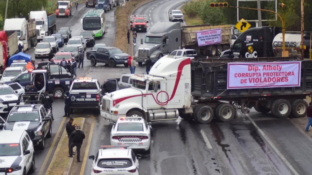 Esta mañana del lunes, integrantes de la Asociación de Transportistas realizaron una movilización y cierre de vialidades para exigir a las autoridades mayor seguridad en las carreteras por las que transitan diariamente.