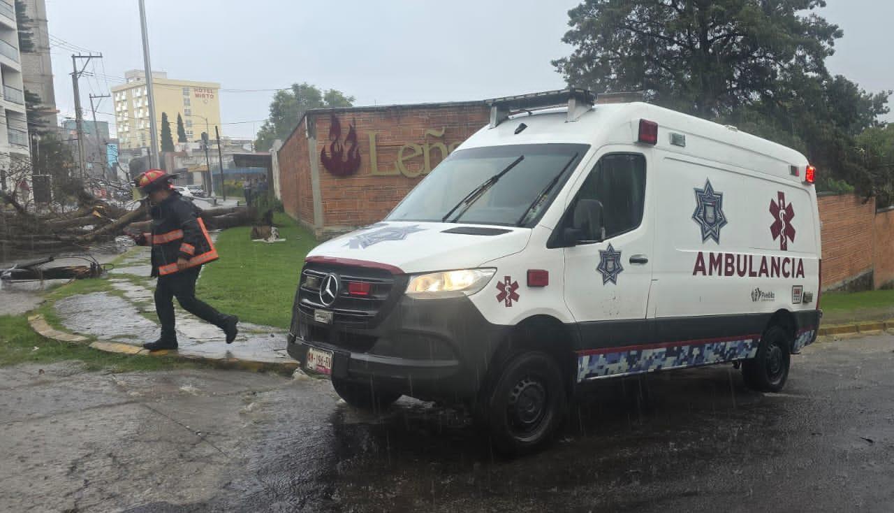 Puebla, Puebla. Personal de Protección Civil Municipal atendió a una mujer que resultó lesionada tras la caída de un árbol, provocada por las lluvias registradas la tarde de este martes en la colonia La Paz.