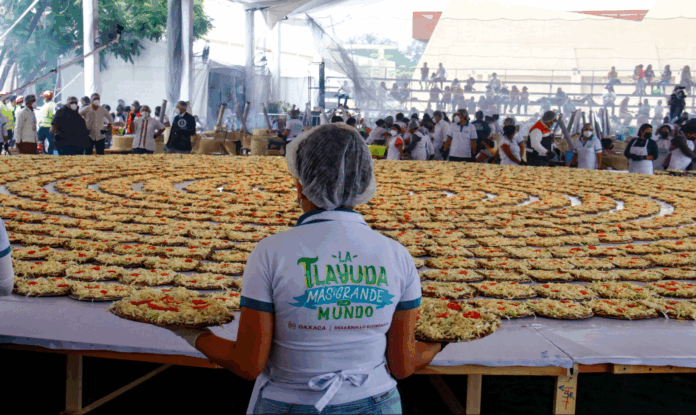 La hazaña culinaria consistió en ensamblar mil 200 tlayudas individuales, formando una sola pieza de 350 metros de diámetro, que duplicó el récord anterior registrado por Guinness World Records.