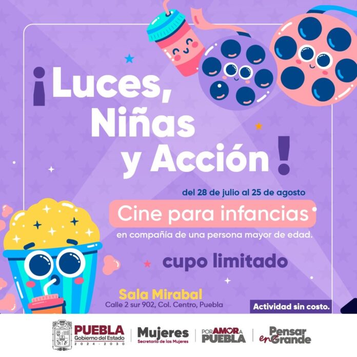 Con el objetivo de fortalecer la sociedad y brindar espacios culturales y recreativos enfocándose en los derechos, el Gobierno del Estado de Puebla, a través de la Secretaría de las Mujeres, invita a las niñas, niños y sus familias a disfrutar del ciclo de cine “¡Luces, niñas y acción!”.