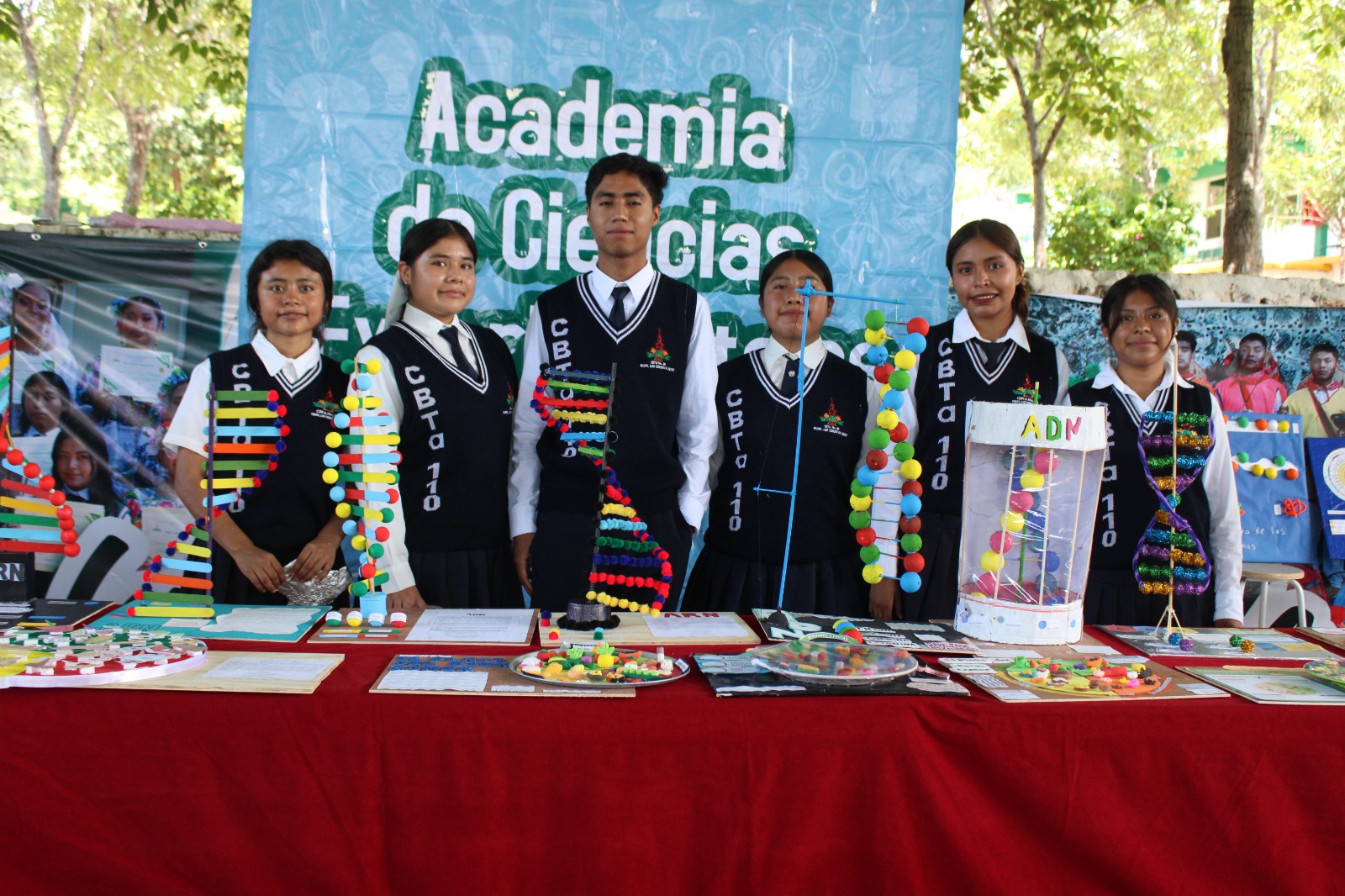 En el área propedéutica destacaron modelos tridimensionales de ADN y ARN, maquetas del plato del bien comer, así como representaciones de mitosis y meiosis.