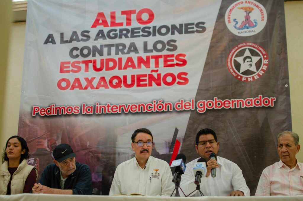 Por lo que anunció que la FNERRR iniciará movilizaciones y acciones de denuncia en todo el país para exigir al gobernador Salomón Jara el cese inmediato de la violencia. Por su parte, el dirigente de Antorcha de la zona centro sur, Juan Manuel Celis Aguirre, respaldó las denuncias y acusó que tanto en Miahuatlán como en Villas de Monte Albán hay pruebas videográficas y documentales que confirman la agresión, la destrucción de bienes y la participación de autoridades municipales en los hechos: “En cualquier lugar civilizado, esos responsables estarían en la cárcel. No podemos permitir que Oaxaca se convierta en una ley de la selva”, declaró. En la conferencia también participaron dirigentes estatales y regionales de Puebla, Soraya Córdova; de Tlaxcala, Isaías Chanona; de Oaxaca, Rolando Reyes, así como el líder veracruzano Samuel Aguirre, quienes expresaron su respaldo total a la lucha de los estudiantes oaxaqueños y exigieron la intervención del gobernador para restablecer el orden y garantizar el respeto a la ley. El Movimiento Antorchista advirtió que, de no atenderse la problemática, el conflicto escalará a nivel nacional: “No venimos a declarar guerra, venimos a pedir justicia y paz. Pero si no se respeta la ley, no vamos a quedarnos con los brazos cruzados”, concluyó Aguirre Enríquez.