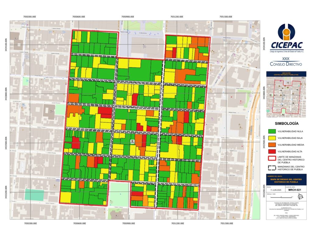 El Colegio de Ingenieros Civiles del Estado de Puebla (CICEPAC) presentó la primera etapa de un estudio de riesgos y vulnerabilidades en edificaciones del Centro Histórico de Puebla.
