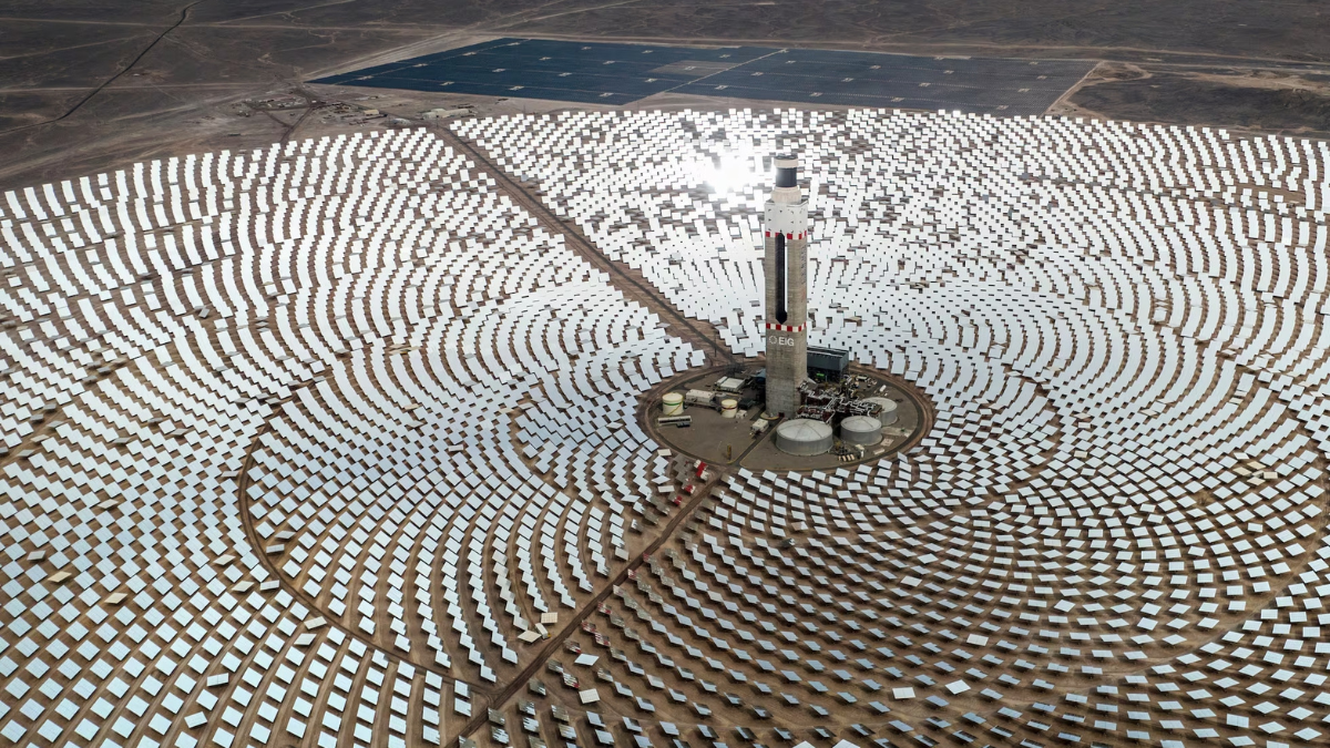 La planta estará integrada por dos centrales que aprovecharán la tecnología de potencia solar térmica de torre central, este modelo utiliza una torre de 100 metros rodeada de miles de espejos que concentran la radiación solar hacia un receptor en la parte superior.