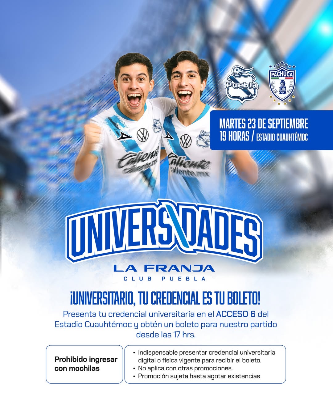 Por tal motivo, el equipo busca que la afición regrese al estadio, y cómo medida sobre el asunto, lanzó la promoción de que los estudiantes de universidad puedan entrar gratis al estadio. Para poder lograr esto, los alumnos deberán presentarse desde las 17:00 horas en el acceso 6 con su credencial válida de la Universidad en donde estén estudiando.