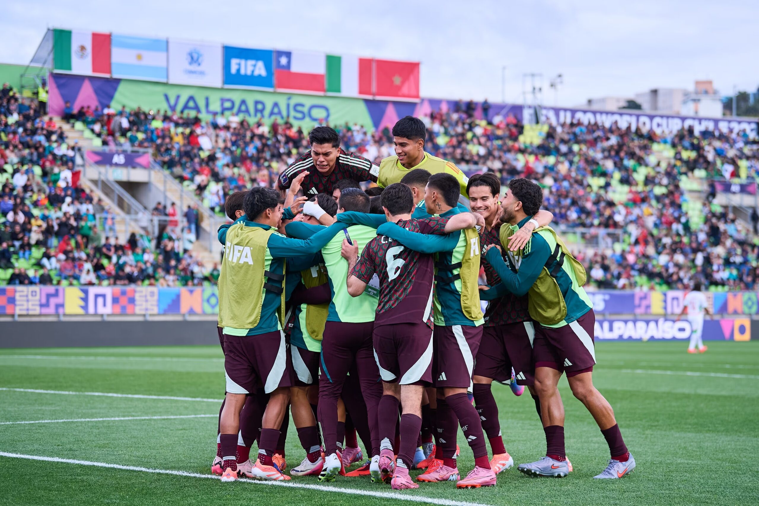 El conjunto mexicano aseguró su pase a los octavos de final tras vencer por la mínima diferencia a Marruecos en el estadio Elías Figueroa Brander, resultado que le permitió avanzar como segundo lugar de su grupo con cinco puntos.