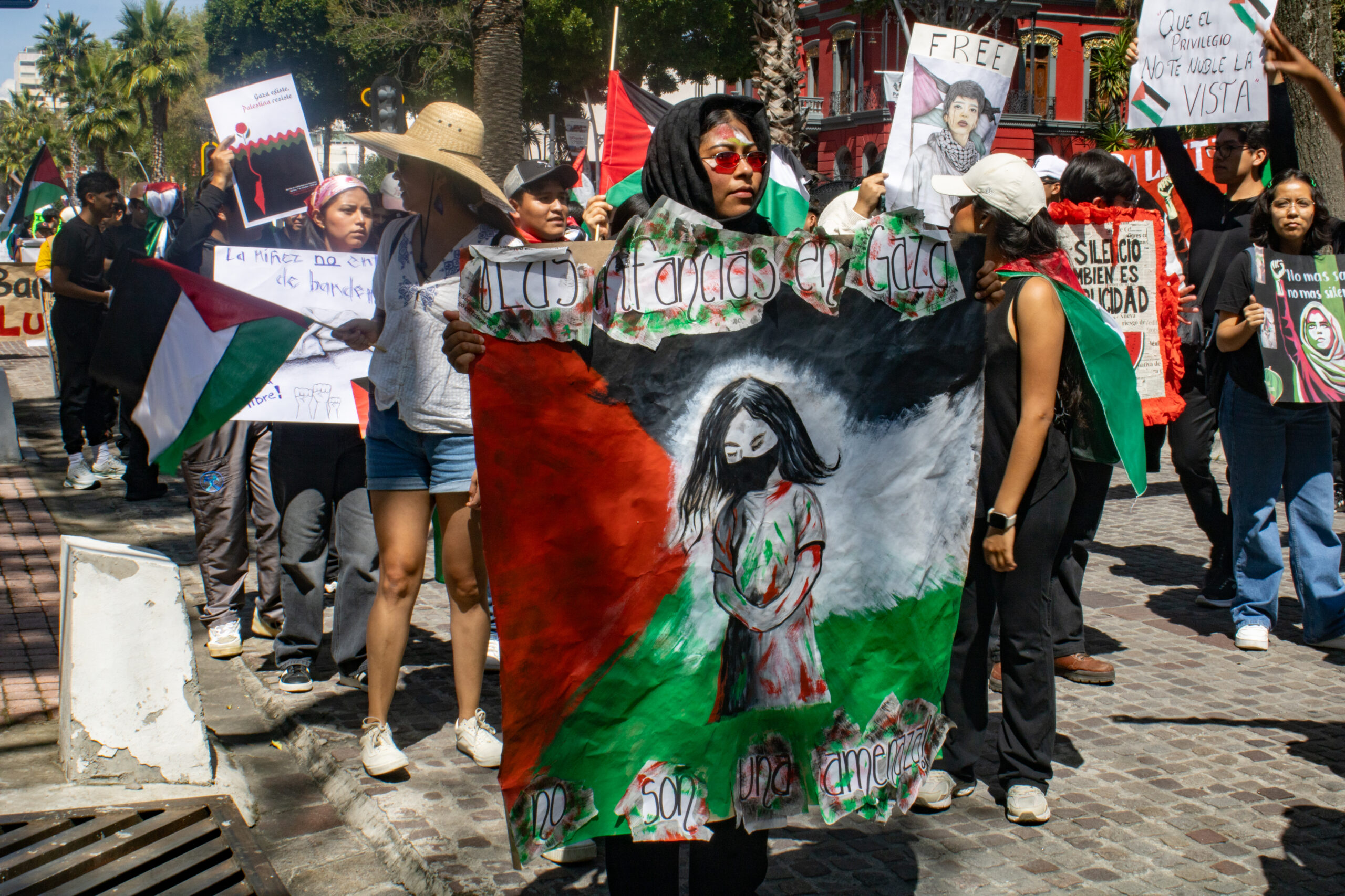 Alrededor de las 11:00 horas, se llevó a cabo una marcha pacífica en apoyo al pueblo palestino en la ciudad de Puebla, con el objetivo de exigir el alto al genocidio en Gaza.