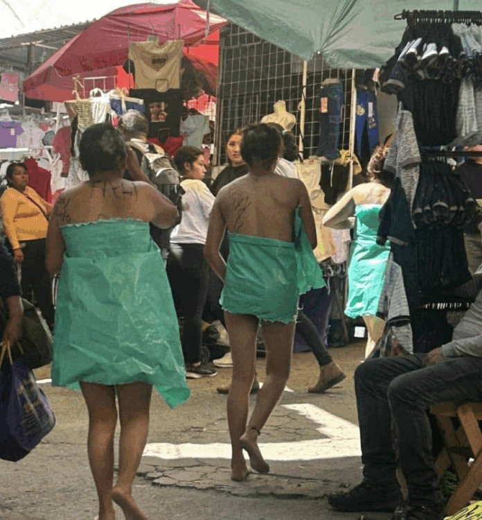 San Martín Texmelucan, Puebla. Comerciantes del tianguis de San Martín Texmelucan, el más grande de América Latina, detuvieron a tres mujeres acusadas de intentar robar pacas de ropa, a quienes raparon y desnudaron en plena vía pública como castigo por el presunto delito.
