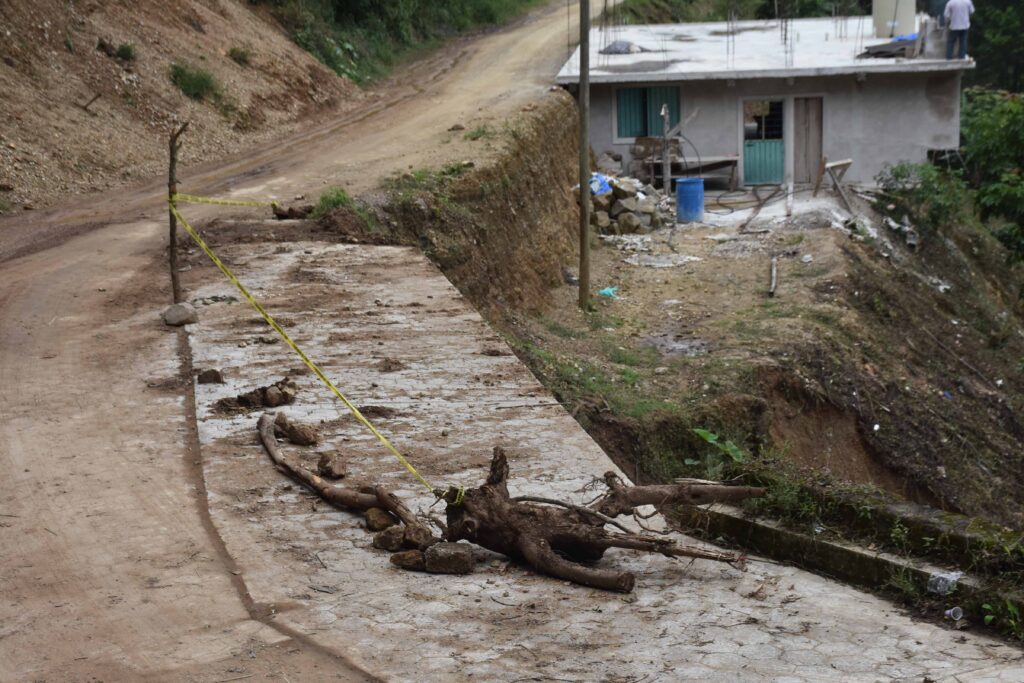 Mencionó que el derrumbe, que inició a unos tres metros de su casa, cayó sobre el camino principal de la comunidad. Fue gracias a que el ayuntamiento que los escombros del deslave ya fueron retirados del camino, además de que en el recorrido que hizo Seguridad Pública municipal, se les brindó apoyo con una despensa y se les dieron instrucciones para reubicarse en caso de continuar las lluvias, para evitar un mayor peligro.