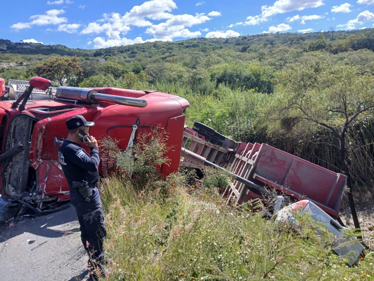 Después de que los paramédicos sacaron al chofer del tráiler, el edil Humberto Bolaños se retiró del lugar.
