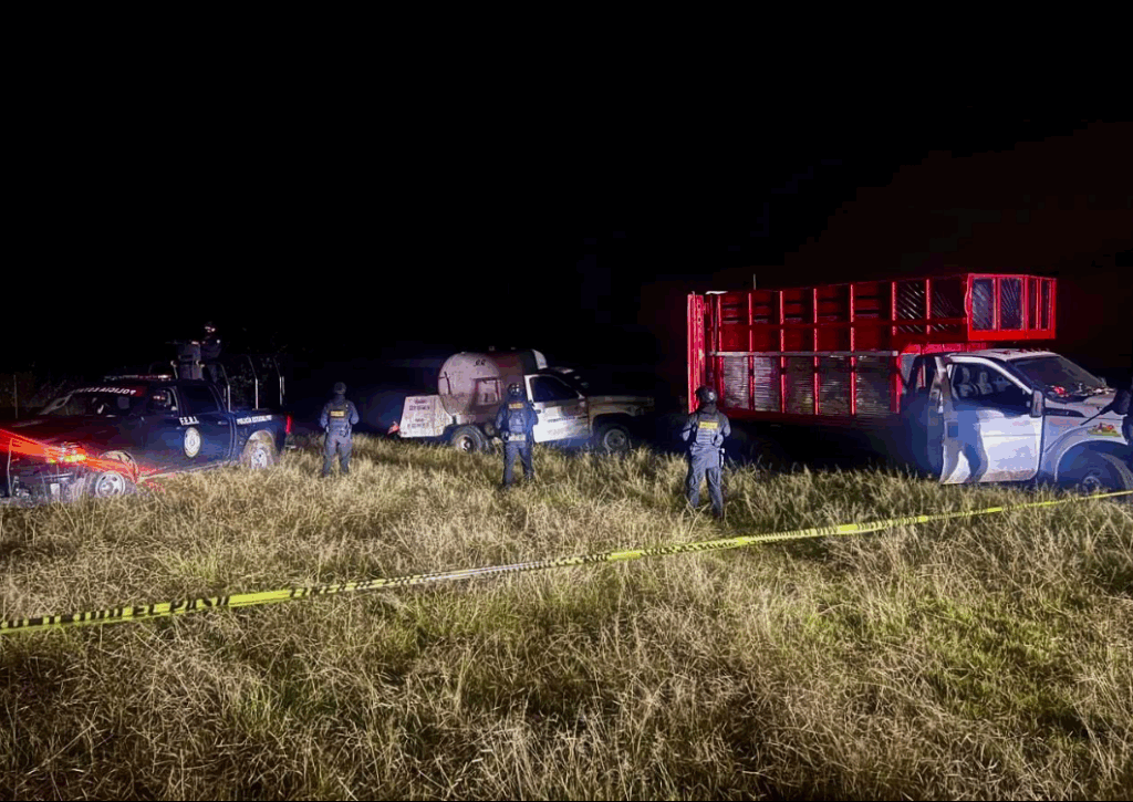 De acuerdo con el reporte, las unidades estaban estacionadas en una zona cercana a ductos de Pemex. En su interior se hallaron mangueras con conexiones de alta presión, cartuchos útiles y una cantidad pequeña de hierba seca con características de marihuana.