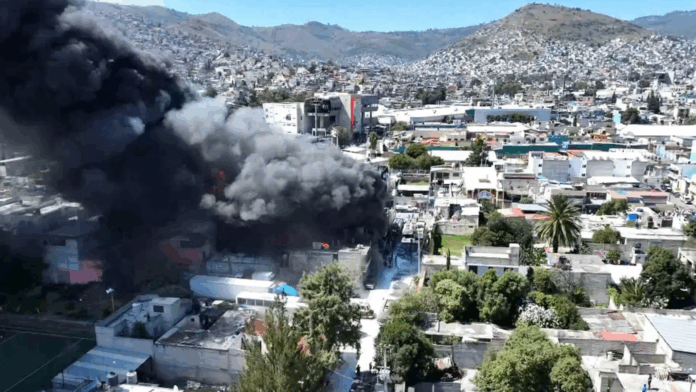Un fuerte incendio consumió una fábrica de colchones de cuatro niveles ubicada en la colonia Carlos Hank González, en Ecatepec, lo que obligó a las autoridades a desalojar a más de 500 vecinos y trabajadores de la zona, el siniestro, registrado poco antes del mediodía de este martes, generó una densa columna de humo visible desde varios municipios del Valle de México.