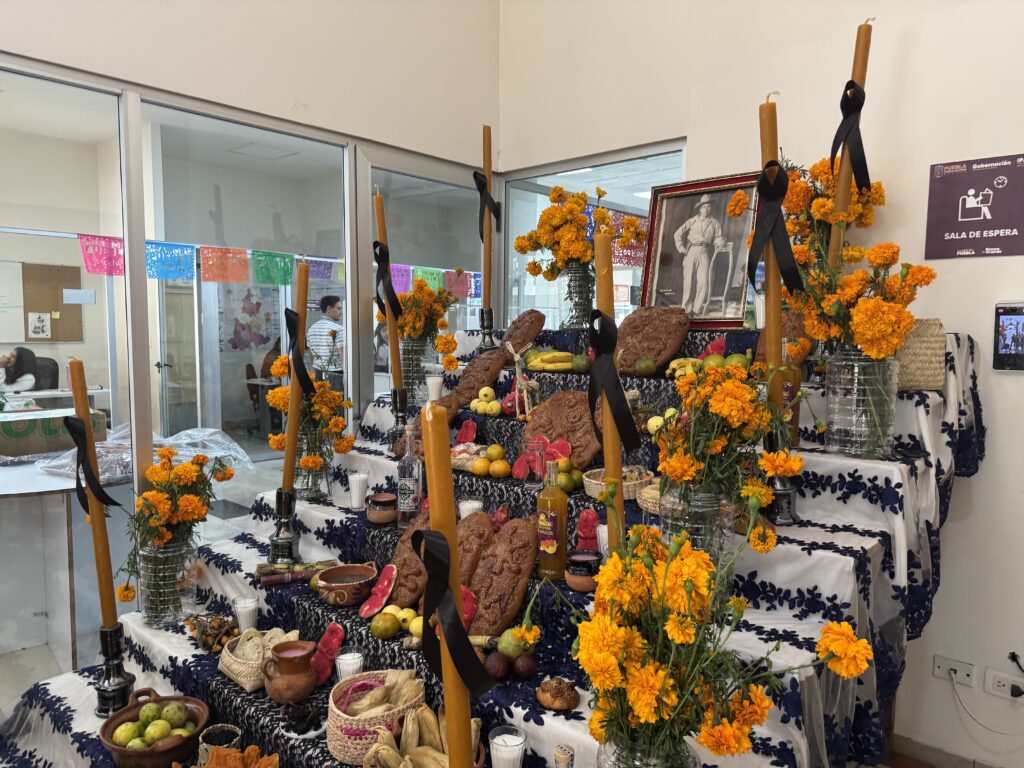 Santa Inés Ahuatempan, Puebla. Inauguran la «Ofrenda Nueva» de Santa Inés Ahuatempan en las instalaciones del Instituto Poblano de Atención al Migrante (IPAM), ubicado en la capital poblana, en un evento que busca impulsar el reconocimiento de esta tradición como Patrimonio Cultural del Estado.