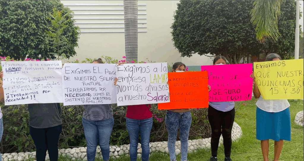 Dentro de las principales demandas de las trabajadoras destaca que se apersone el representante de la empresa para celebrar la firma del contrato laboral, el pago puntual de su salario, seguro social, vacaciones pagadas.