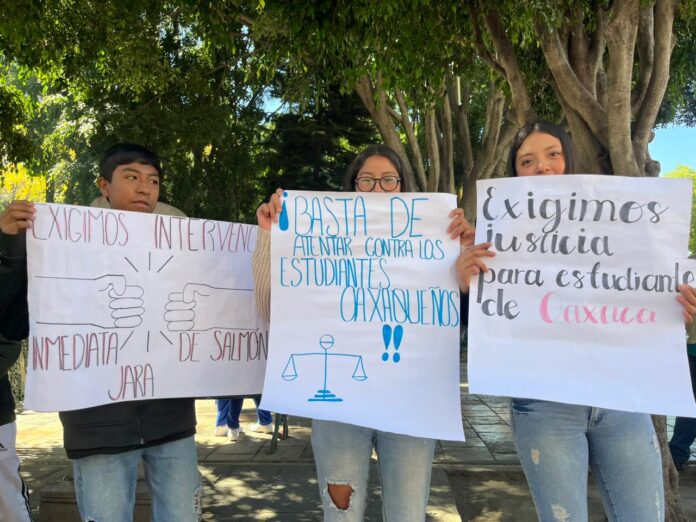 “¡Exigimos al gobernador de Oaxaca que atienda a nuestros compañeros oaxaqueños y no se muestre indiferente ante las agresiones!”, gritaban en sus consignas los jóvenes.