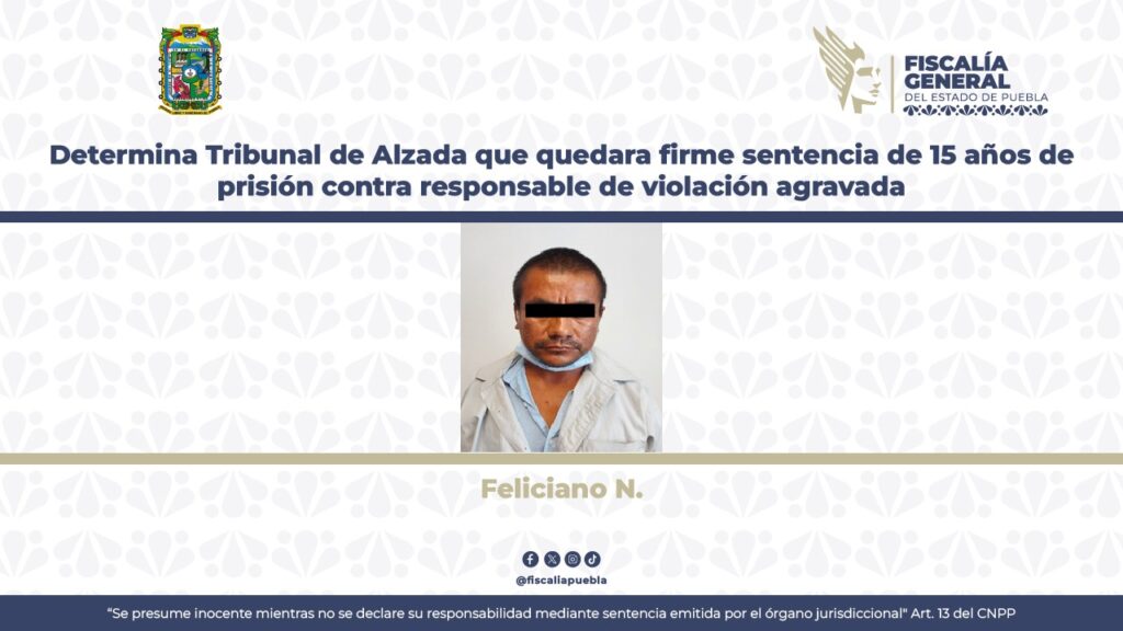 La Fiscalía General del Estado, a través de los argumentos presentados, consiguió que el Tribunal de Alzada declarara firme la sentencia dictada en primera instancia. En consecuencia, Feliciano N. deberá cumplir una pena de 15 años de prisión por el delito de violación agravada.