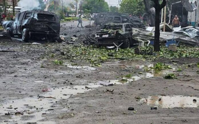 El fiscal estatal Carlos Torres Piña detalló que una camioneta Dodge Ram tipo Dakota proveniente de Colima llegó hasta las instalaciones de la policía comunitaria donde explotó dejando cinco muertos tres de ellos elementos comunitarios y siete personas lesionadas además de daños en doce vehículos incluidos dos blindados de la corporación.
