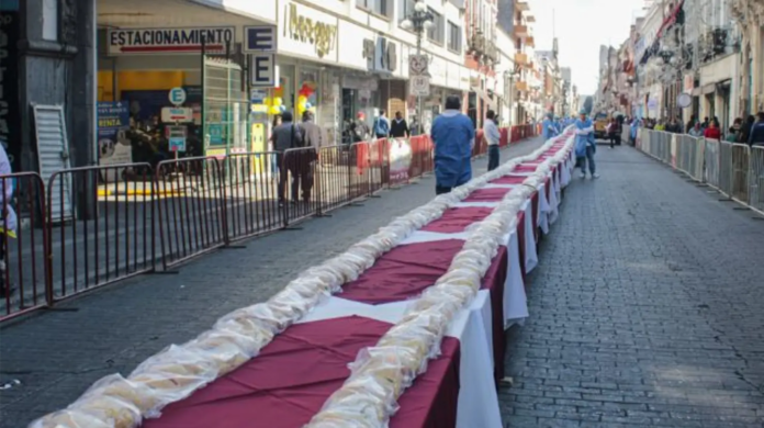 Desde la plancha del Zócalo, el adjudicador oficial de Guinness World Records confirmó que se logró la línea de panes más larga del mundo, luego de un proceso de preparación que inició desde los primeros días del año y que fue supervisado bajo estrictos lineamientos internacionales.