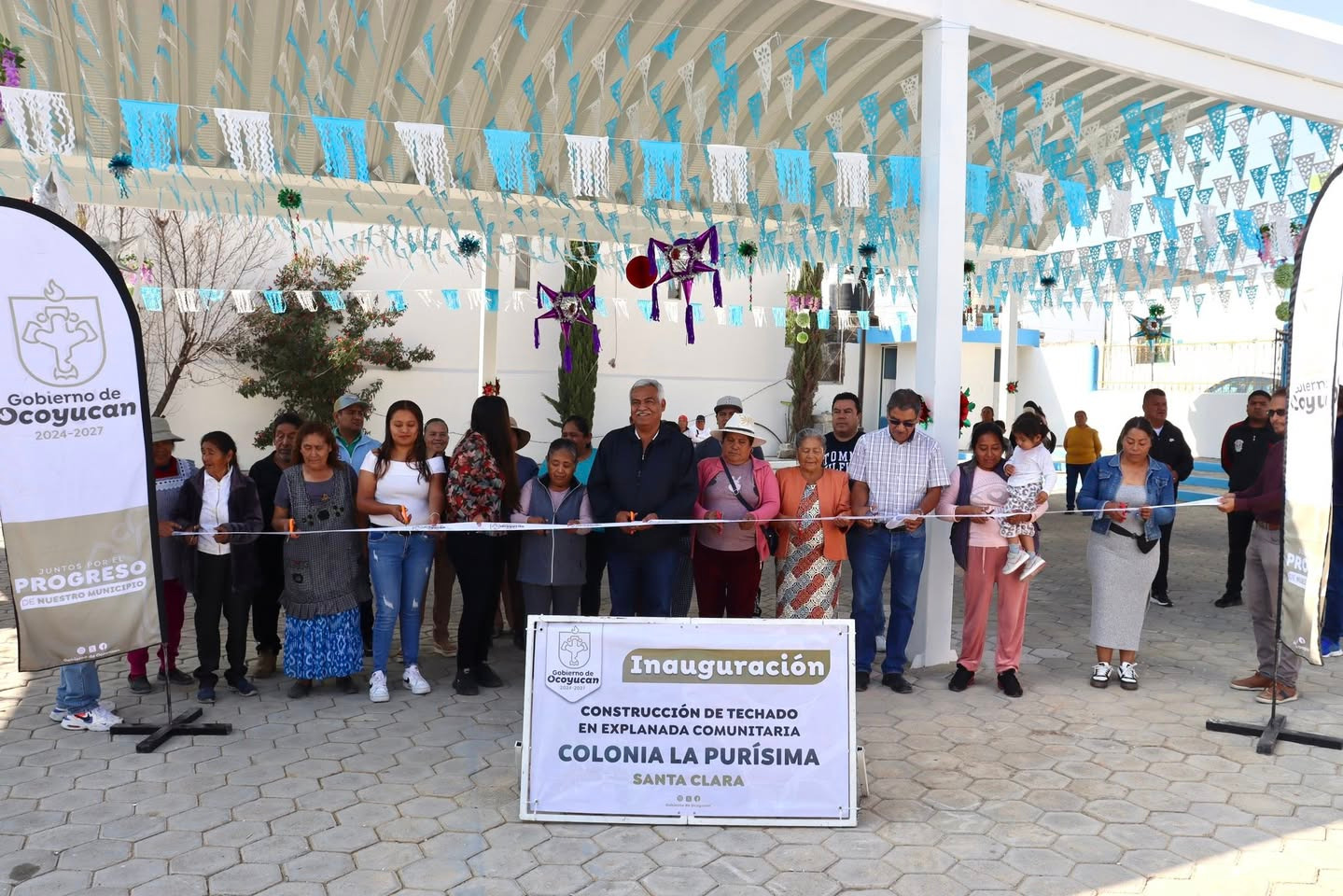 Ocoyucan, Puebla. “Este techado es fruto del trabajo en equipo entre el gobierno municipal y la comunidad. Los invito a mantenernos unidos y avanzar en la misma dirección para seguir construyendo el desarrollo del municipio”, expresó Aristóteles Campos Flores, presidente municipal de Ocoyucan, durante el acto inaugural del techado de la explanada comunitaria de la colonia la Purísima Concepción ubicada cerca de la cabecera municipal.