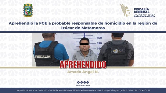 La Fiscalía General del Estado capturó a Amado Ángel N., quien contaba con una orden de aprehensión por su probable responsabilidad en el delito de homicidio calificado en contra de un hombre, ocurrido en la región de Izúcar de Matamoros, Puebla.