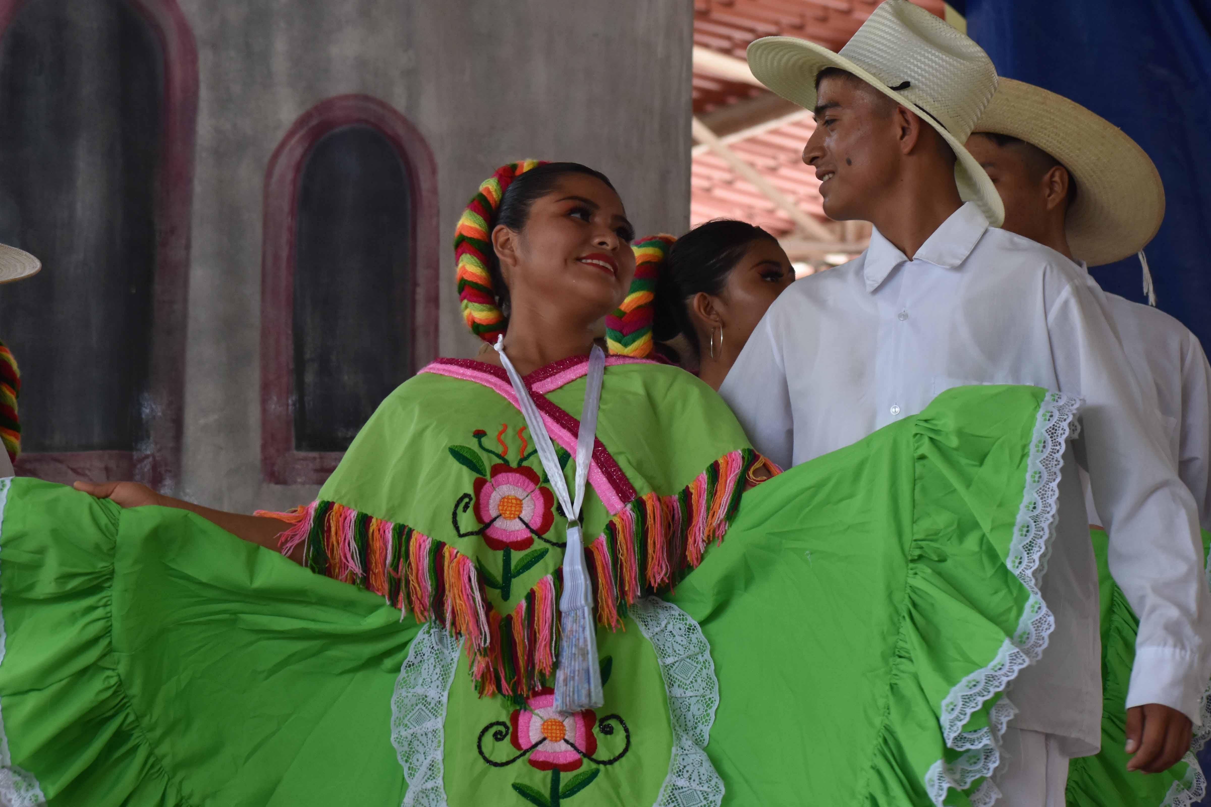 Suenan las campanas como señal de fiesta. Olintla vibra y se estremece cuando ve a sus hijos bailar, cantar y declamar. Más de 200 alumnos en el escenario, cantando “Dime que sí” del autor Alfonso Esparza Oteo, bailando huasteca veracruzana e hidalguense o declamando “Sentado sobre los muertos” del poeta español Miguel Hernández.