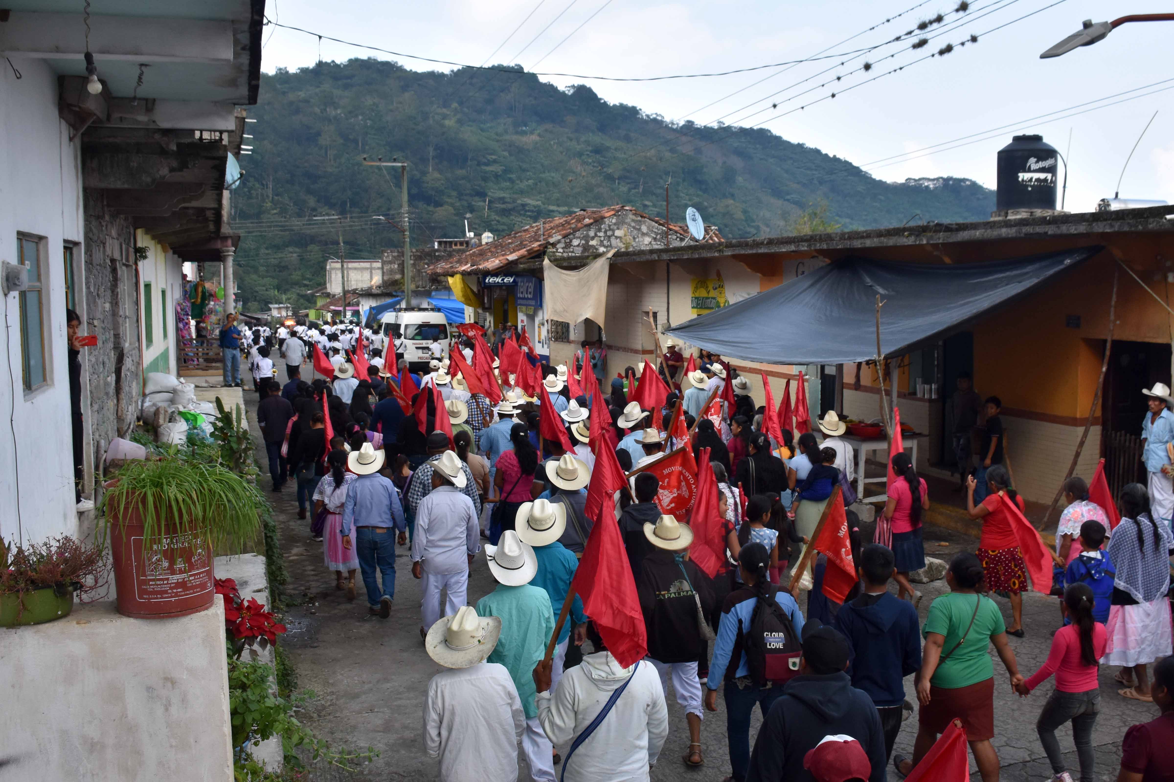 Una marea roja recorrió las calles principales de la cabecera municipal de Olintla, con rostros henchidos de alegría, huipiles y trajes de manta portados con orgullo por el pueblo totonaco, que hace 35 años decidió revelarse contra sus opresores y caminar por un rumbo nuevo.