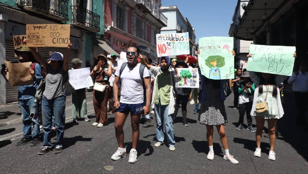 Este domingo por la tarde, cientos de personas en Puebla realizaron una marcha pacífica para manifestarse en contra del proyecto de construcción del Cablebús, al considerar que representa un gasto innecesario y la posible tala de más de 900 árboles con años de antigüedad.