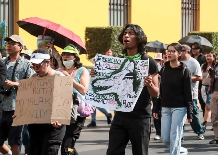 El contingente partió de Ciudad Universitaria y avanzó hacia el Parque Juárez, uno de los puntos que, según los manifestantes, resultaría más afectado por el retiro de árboles para la construcción de estaciones. Durante la movilización, los estudiantes portaron pancartas y corearon consignas como: “¡Armenta, entiende, queremos áreas verdes!” y “¡El cielo es de las aves, no del Cablebús!”. A su paso también retiraron publicidad del proyecto colocada por el gobierno estatal.