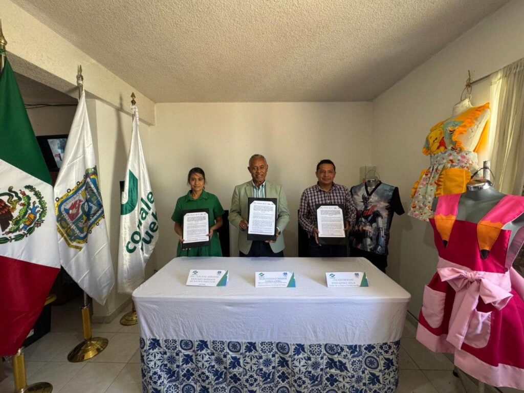 En su intervención, Getsemaní Hernández Azua, gerente de Scrubs Inovdeg, microempresa dedicada a la manufactura de textiles, señaló que mediante esta alianza logran contribuir con la preparación de las y los alumnos y al mismo tiempo se benefician con mano de obra capacitada que apoya en los procesos productivos.