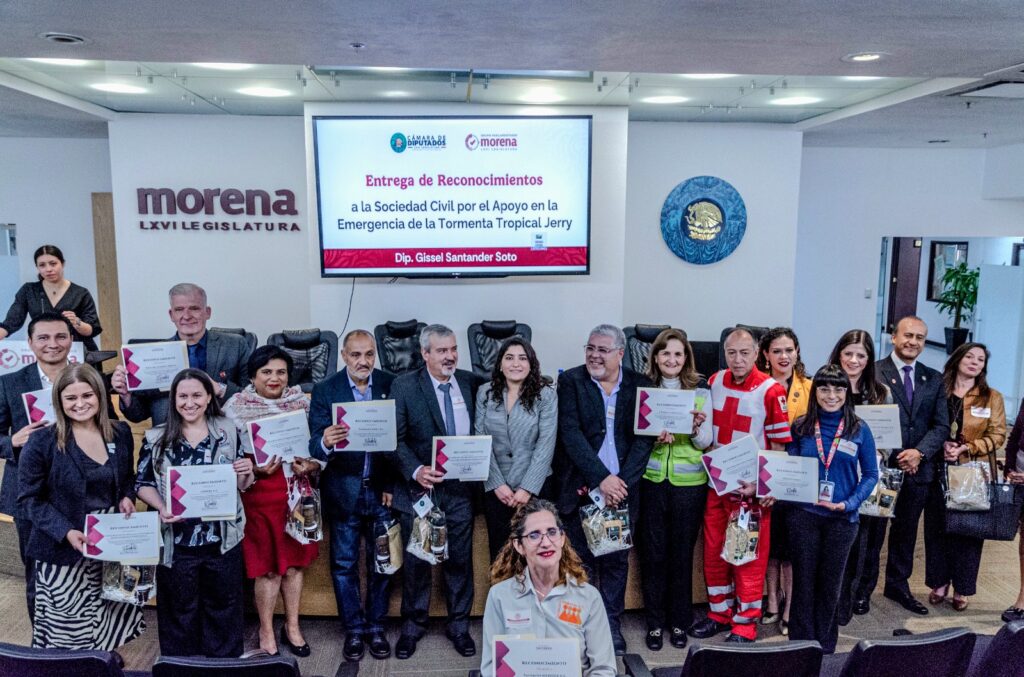La diputada del Estado de Puebla, Gissel Santander Soto, realizo la iniciativa de reconocer a través de la entrega de reconocimientos a las organizaciones de la sociedad civil que se sumaron durante la emergencia de la tormenta tropical Jerry, la cual se llevó a cabo este martes 10 de marzo del 2026 en el auditorio Herbert Castillo de la Cámara de Diputados en la Ciudad de México.