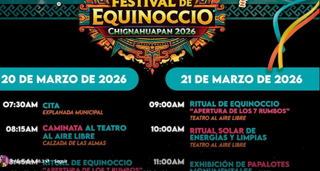 El municipio de Chignahuapan llevará a cabo el “Festival Equinoccio Chignahuapan 2026” los próximos 20 y 21 de marzo, con una serie de actividades enfocadas en la llegada de la primavera y la conexión con tradiciones de origen prehispánico.